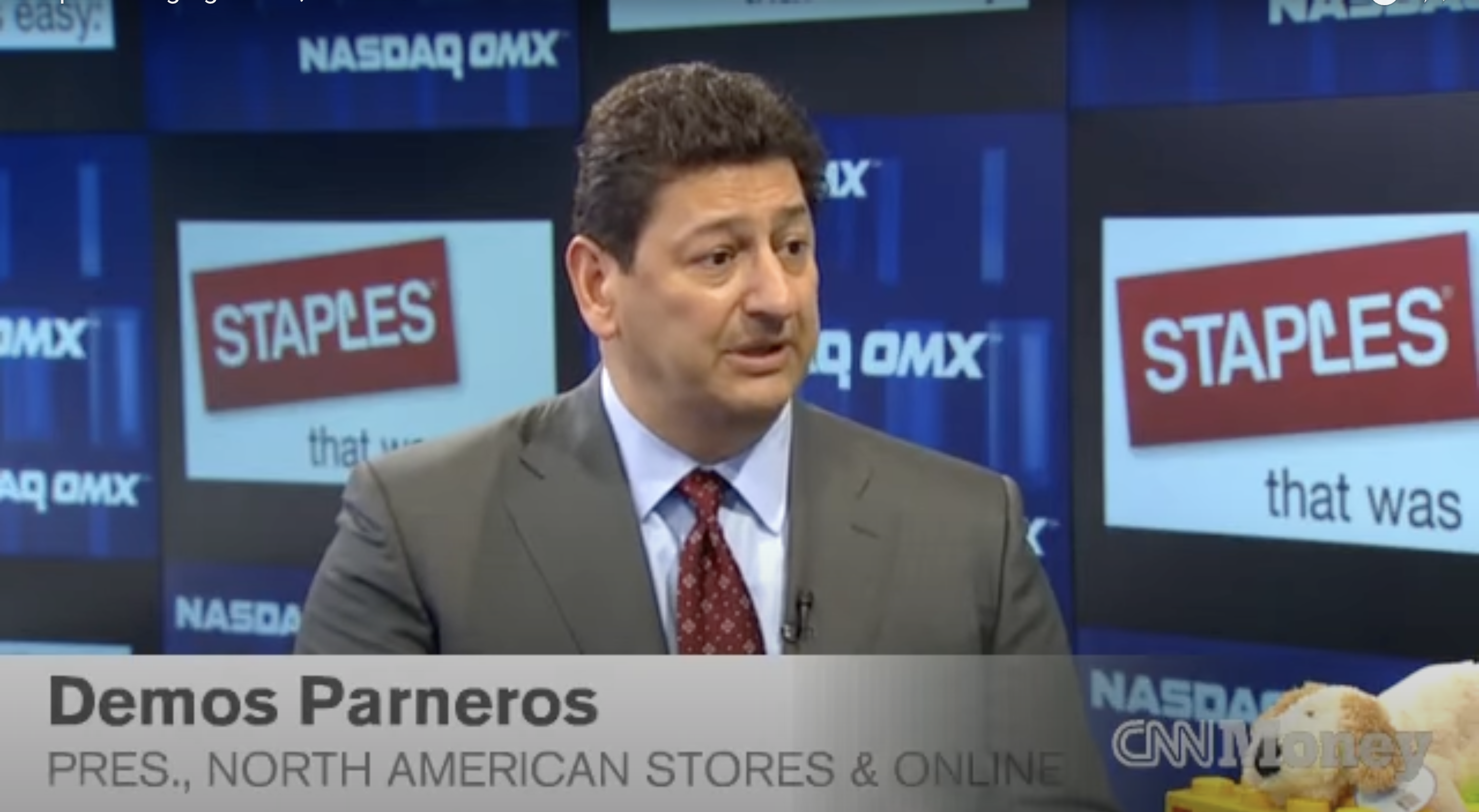 Staples President Demos Parneros says newer technologies and products, like online kiosks in stores, have helped push his company’s stock higher over the last year.